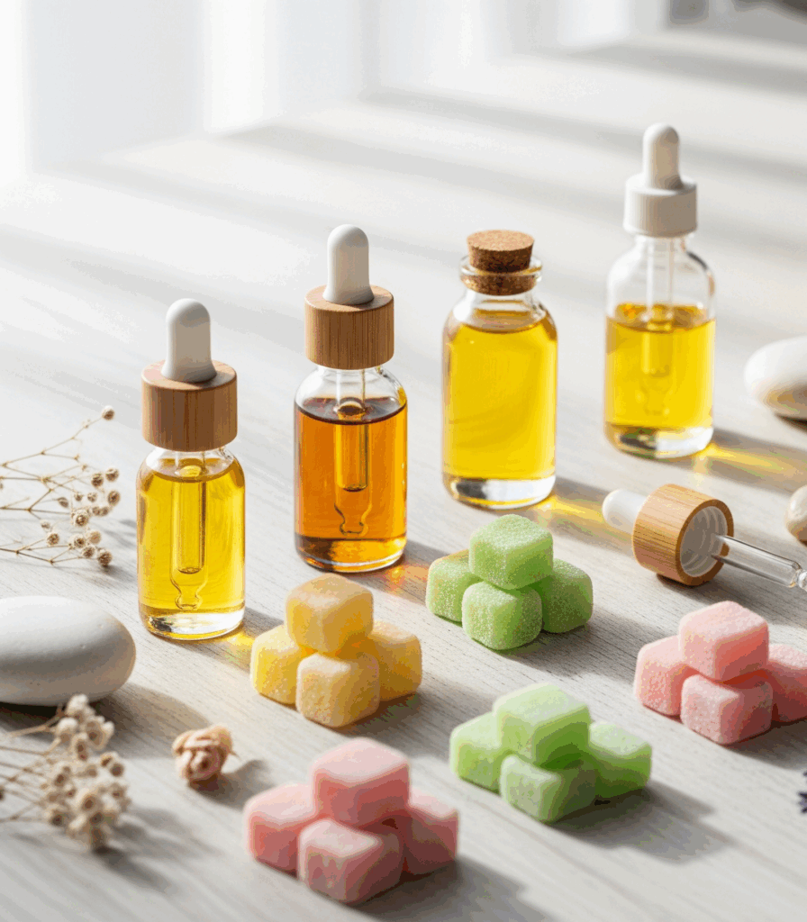 • Tinctures and Oils: Fast-acting (15-45 minutes) and versatile. Perfect for sublingual use or adding to drinks.